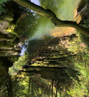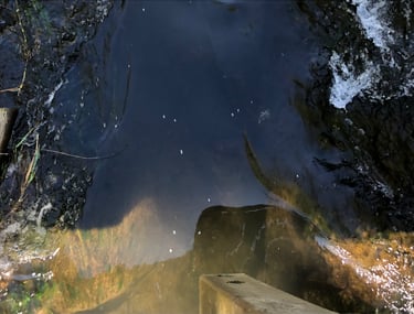 une flaque, un étang, une libellule ou un rocher