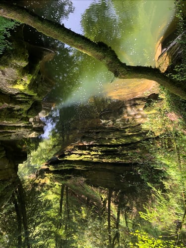 Il y a des gorges comme cela où l'on se retrouve comme immergés dans des univers végétaux, aquatiques et ancestraux. Des terres d'eau et de roches dont l'on revient comme vitaminés. On y flotte dans des contrées de bleu, de vert, de jaunes et de rose. Oui, le Jura compte des terres comme cela.