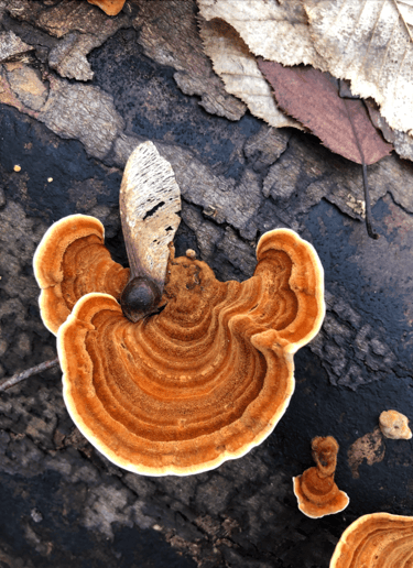 C'est le relief des robes des flamenca sévillannes que l'on peut lire dans le champignon de ce petit tableau. Avec le feuilleté de feuilles aux teintes complémentaires, en haut à droite, le Vivant s'est dépassé.